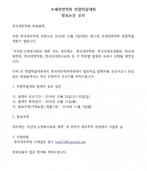 [한국세무학회] 조세관련학회 연합학술대회 발표논문 공모
