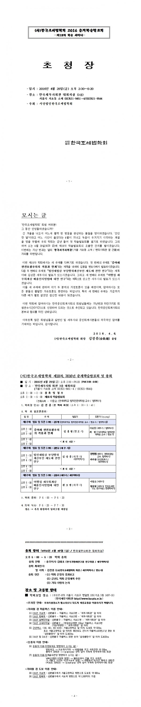 [(사)한국조세법학회] 제18차 학술발표회(2016-4-29(금)(오후 2시-6시반) 알림