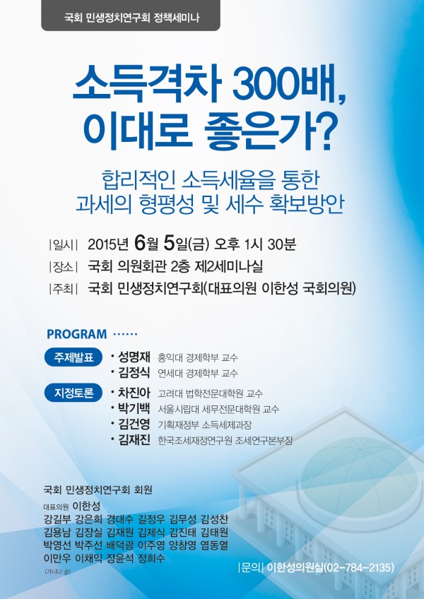[국회 민생정치연구회] 6/5(금) 소득격차 해소방안 세미나 개최
