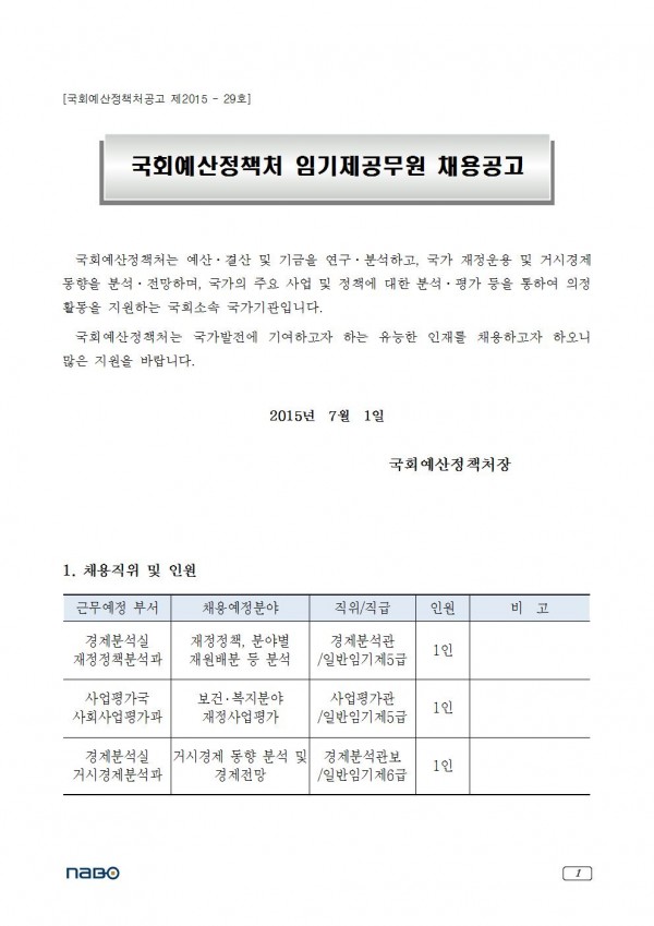 [국회예산정책처]임기제공무원(5급 2인, 6급 1인)