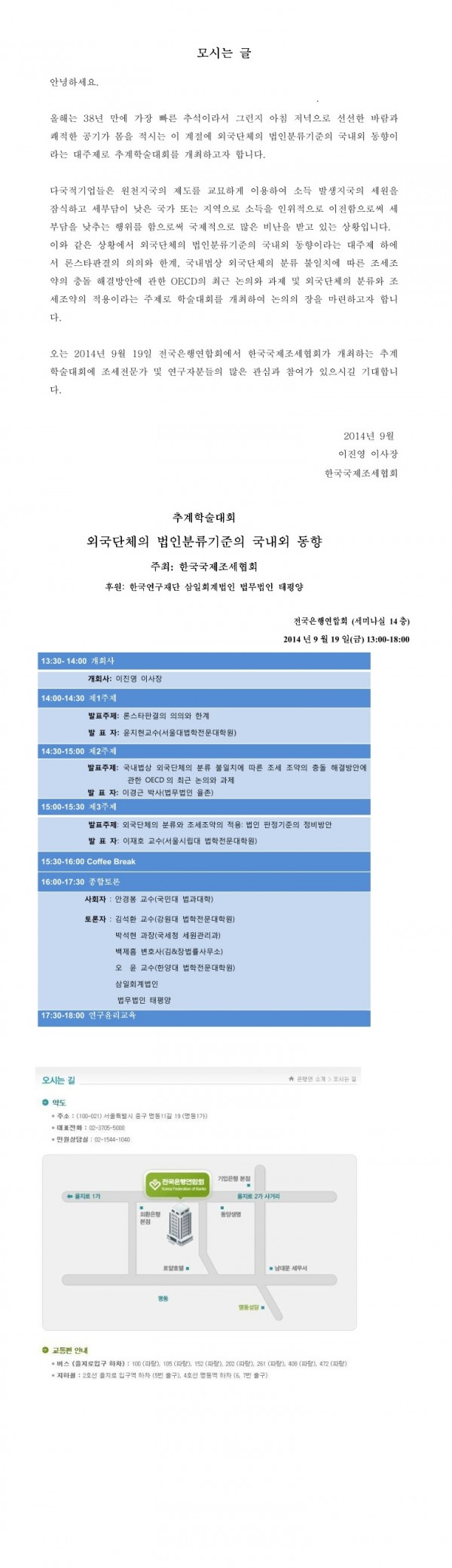 [한국국제조세협회]추계학술대회 개최안내 초청장 공지