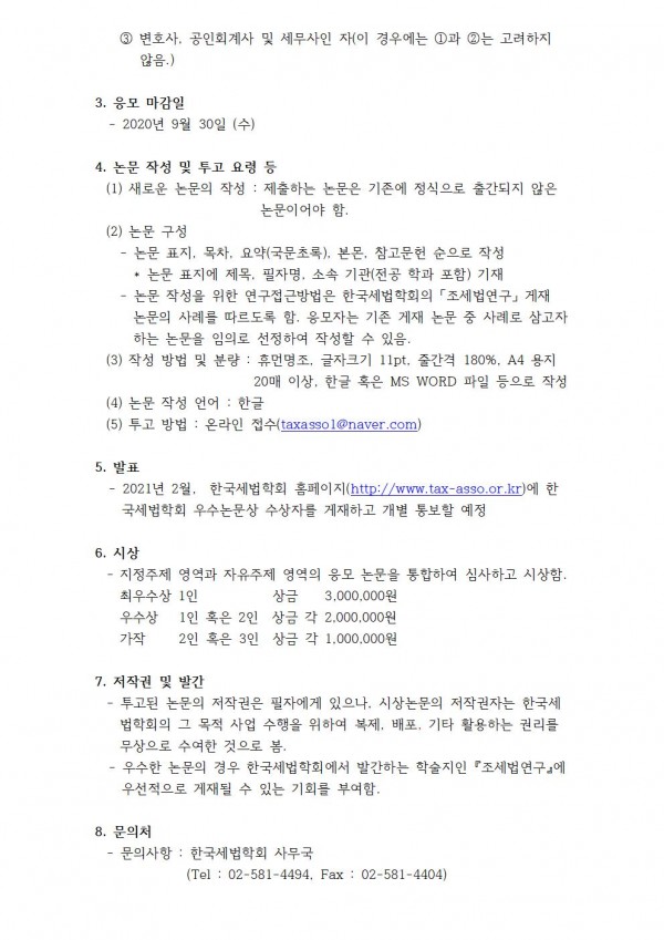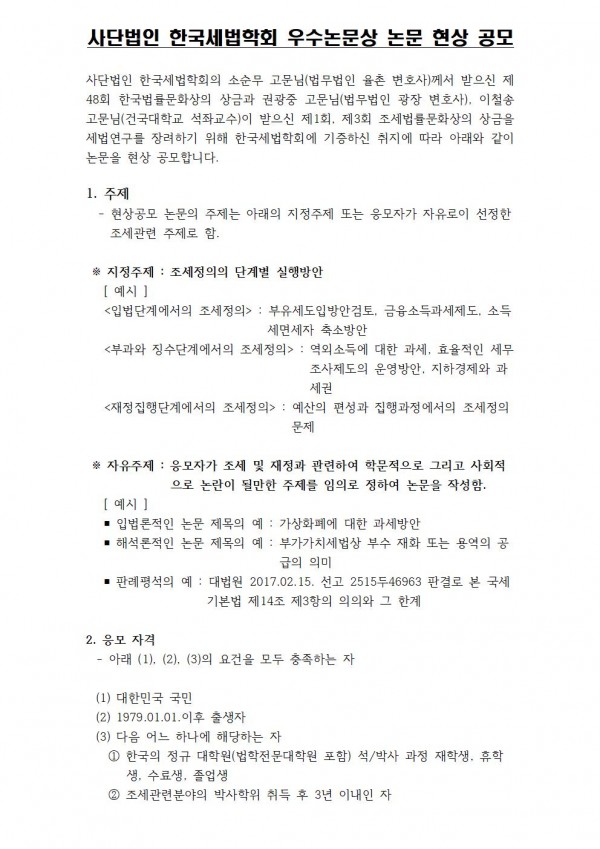 [한국세법학회]사단법인 한국세법학회 우수논문상 논문 현상 공모