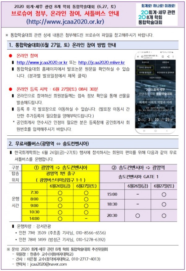 [회계·세무 관련 8개 학회 통합학술대회]주요 내용 공지- (6.27, 토)_브로슈어첨부, 온라인참여, 셔틀버스안내 한국세무학회 0 2,763 2020.06.24 11:28 목록 본문
