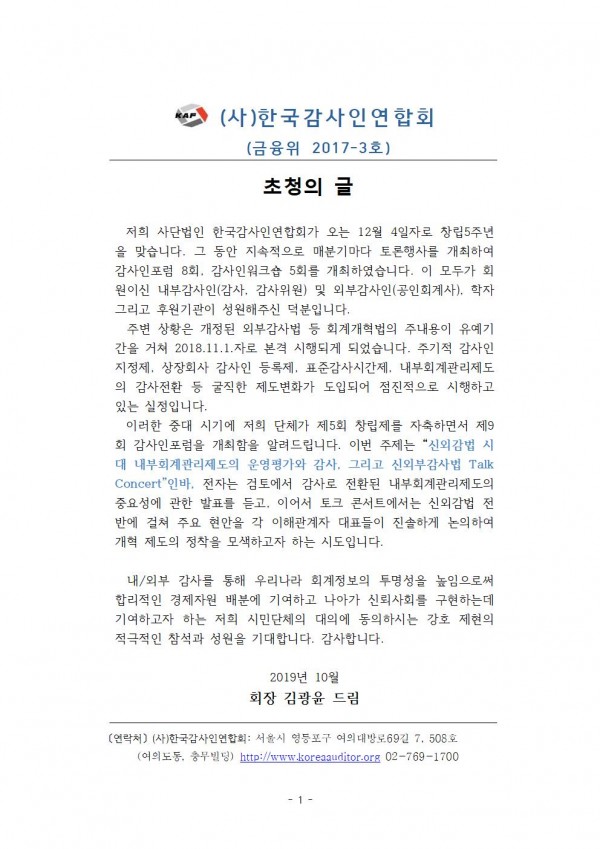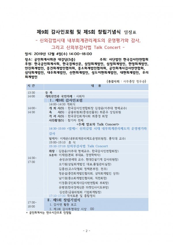 [(사)한국감사인연합회] 제9회 감사인포럼 및 제5회 창립기념식