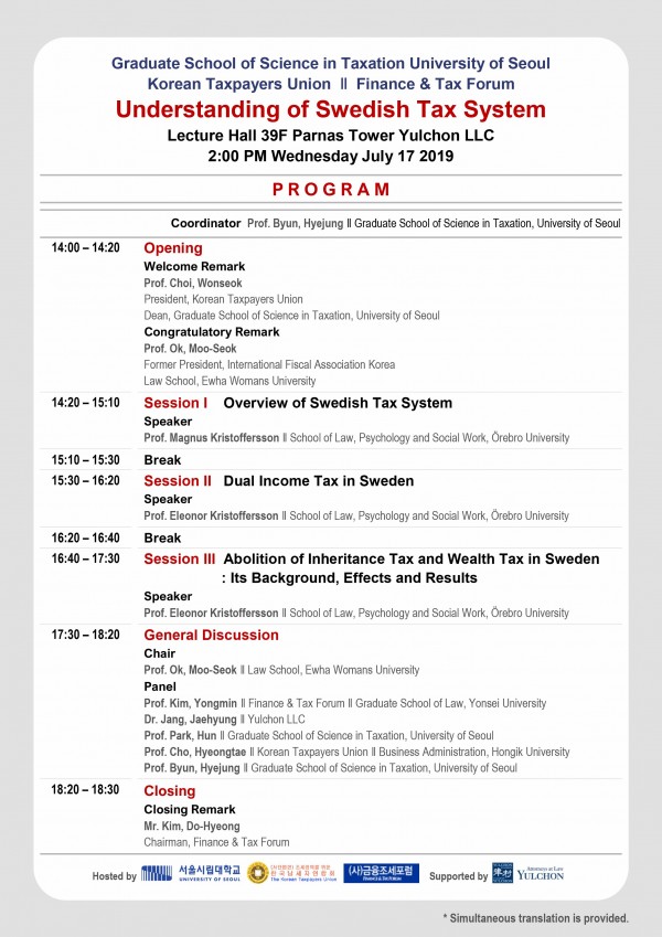 [서울시립대학교/한국납세자연합회/(사)금융조세포럼]"스웨덴 조세제도 이해" 세미나 개최