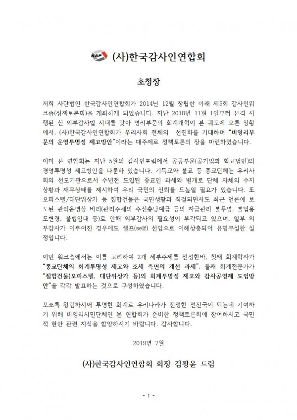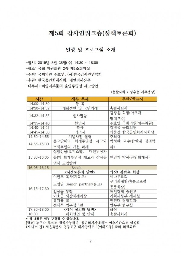 [(사)한국감사인연합회] 제5회 감사인워크숍(정책토론회)