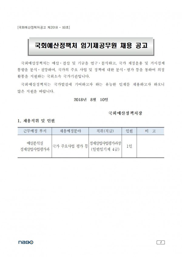 [국회예산정책처] 임기제공무원 채용 공고