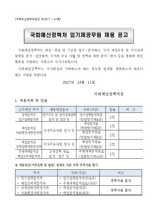[국회예산정책처] 임기제공무원 채용 공고