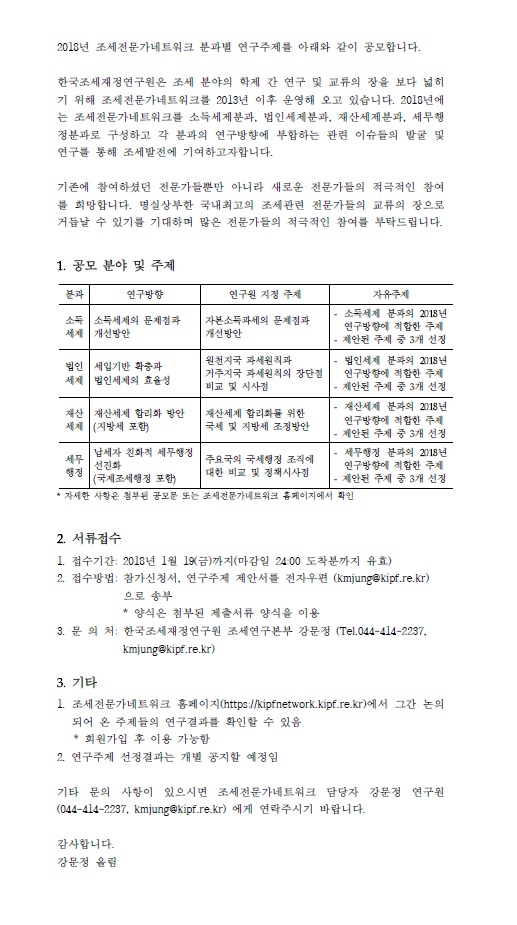 [한국조세재정연구원]2018년 조세전문가네트워크 공모 안내