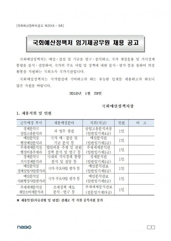 [국회예산정책처] 임기제공무원 채용 공고