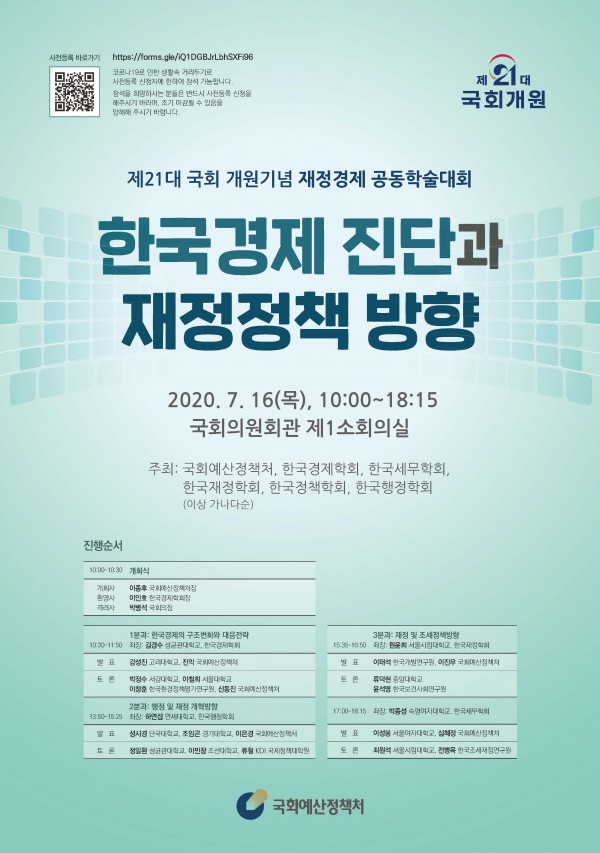 [한국세무학회] 제21대 국회 개원기념 재정경제 공동학술대회 개최(7/16,국회의원회관)-QR코드사전등록