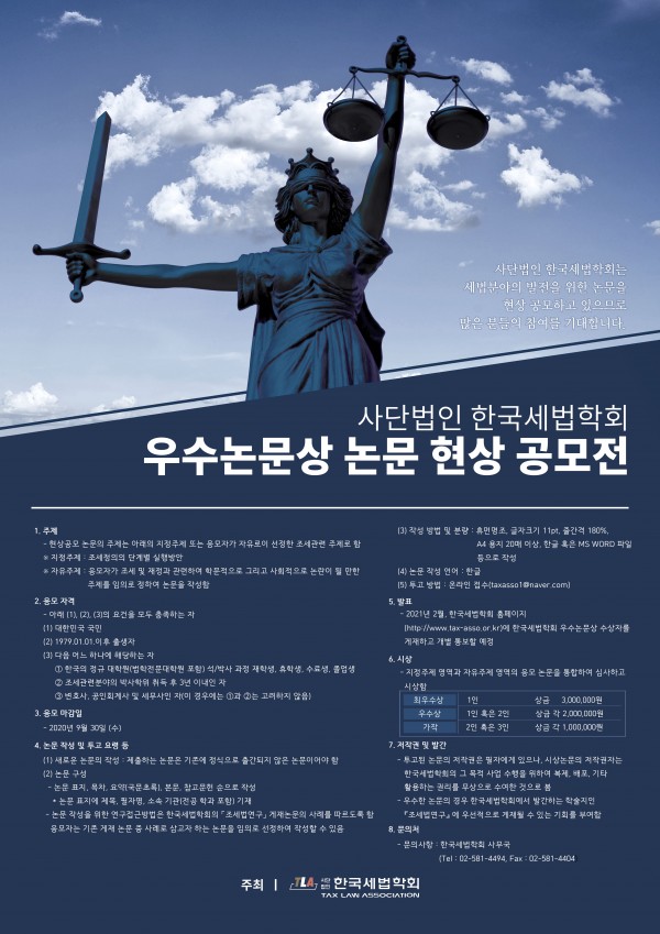 [한국세법학회] 우수논문상 논문 현상 공모전