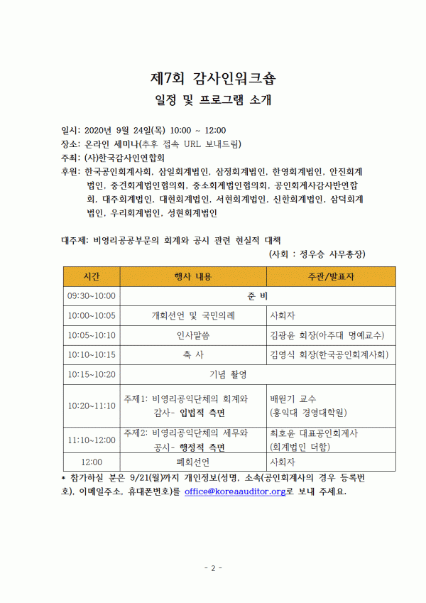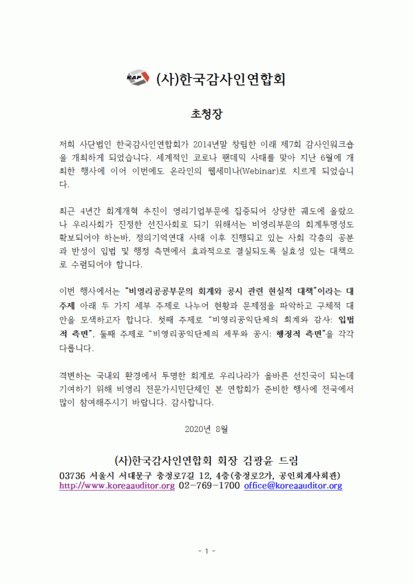 [(사)한국감사인연합회] 제7회 감사인워크숍 초청장 공지