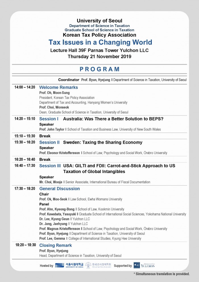 [공지][서울시립대학교 세무학과·세무전문대학원, 한국조세정책학회] "International Tax Conference: T…