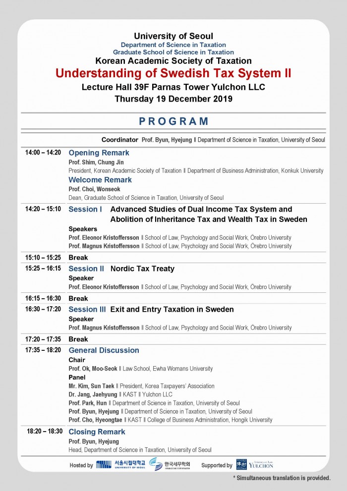 [공지][한국세무학회,서울시립대학교 세무학과·세무전문대학원] Understanding of Swedish Tax System II 개… 한국세무학회 0 9,116 2019.12.09 09:59 첨부파일 - 첨부파일: 20191206_Understanding_of_Swedish_Tax_System_II_Program.pdf (247.2K) 0 2019-12-09 09:59:36 목록 본문