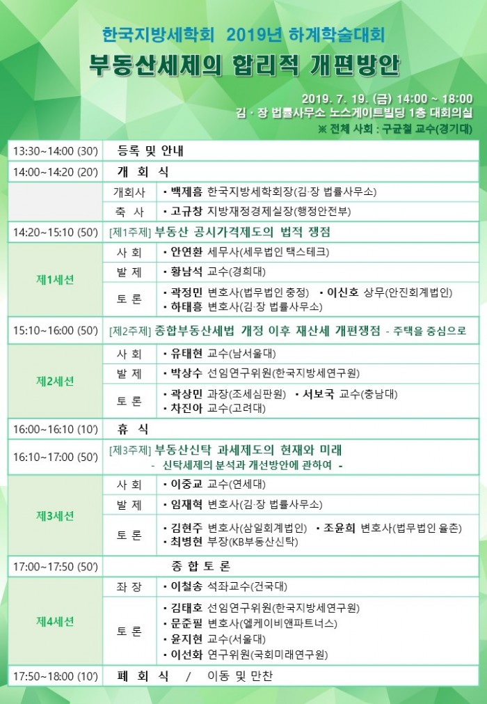 [공지][한국지방세학회] 2019년 하계학술대회 개최 안내 [2019.7.19.(금)]