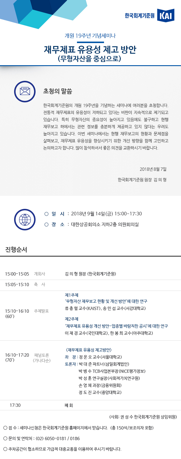 [한국회계기준원] 한국회계기준원 개원 19주년 기념세미나 안내