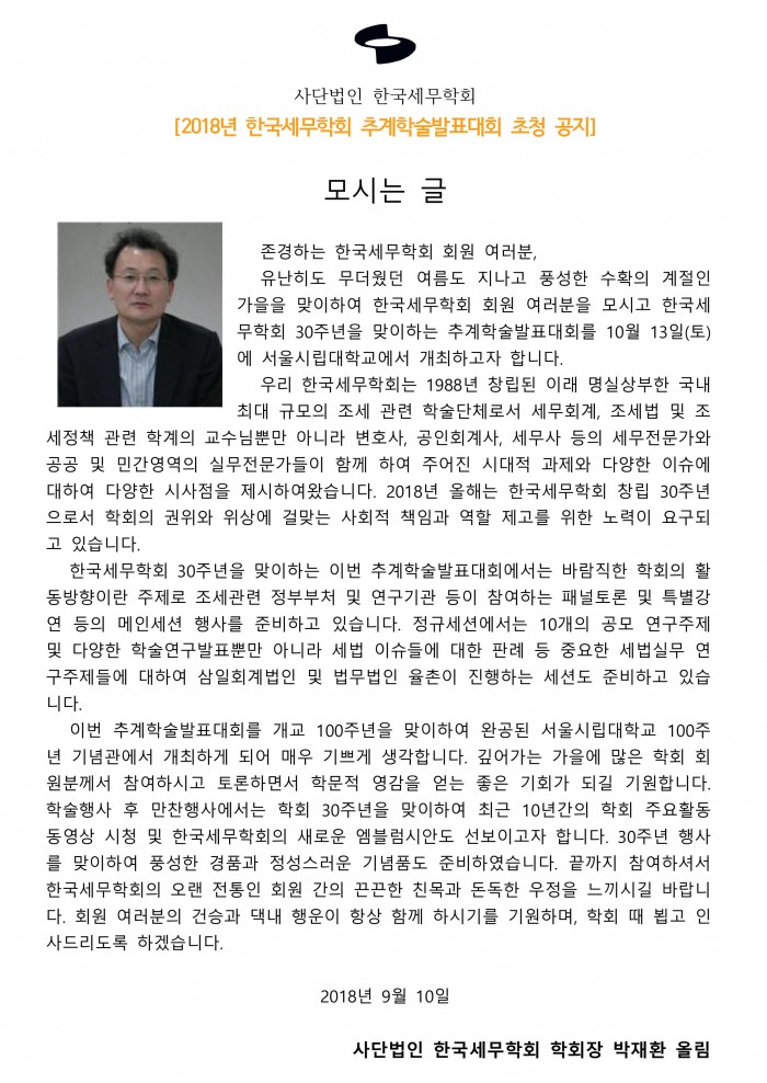[한국세무학회]2018년 추계학술발표대회 초청 공지