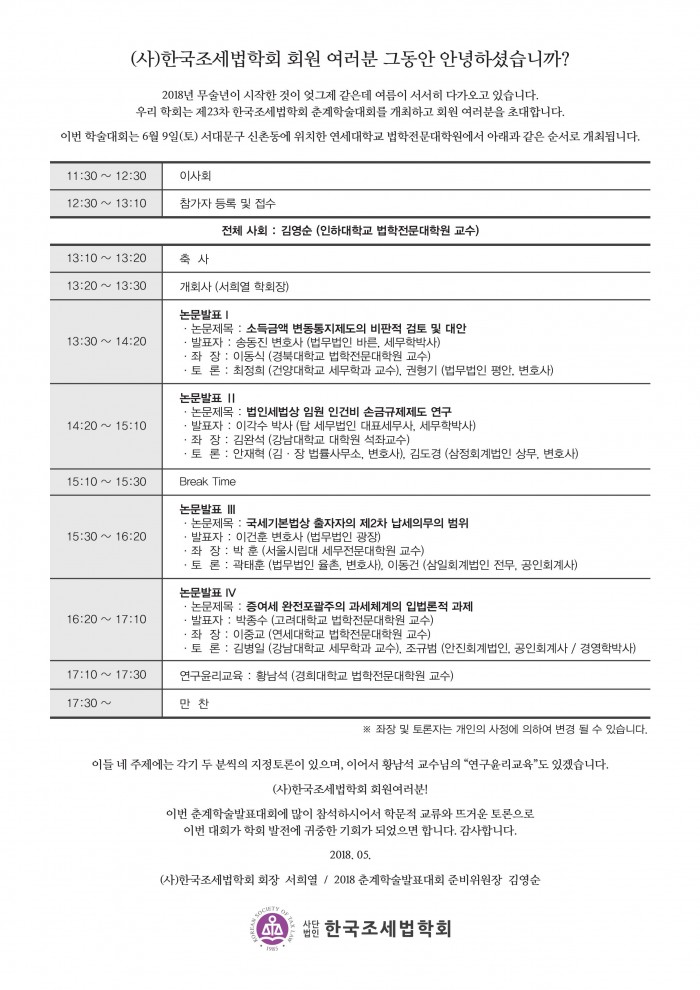 [(사)한국조세법학회] 춘계학술대회 개최공지