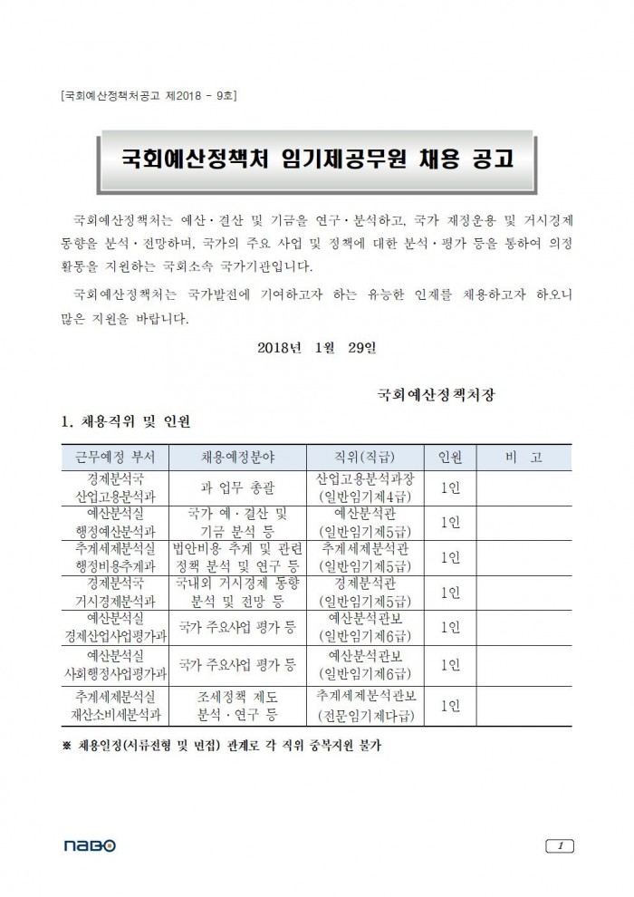 [공지][국회예산정책처] 임기제공무원 채용 공고 한국세무학회 0 14,045 2018.01.30 14:53 첨부파일 - 첨부파일: 국회예산정책처 임기제공무원 채용 공고(최종).hwp (81.0K) 2 2018-01-30 14:53:51 목록 본문