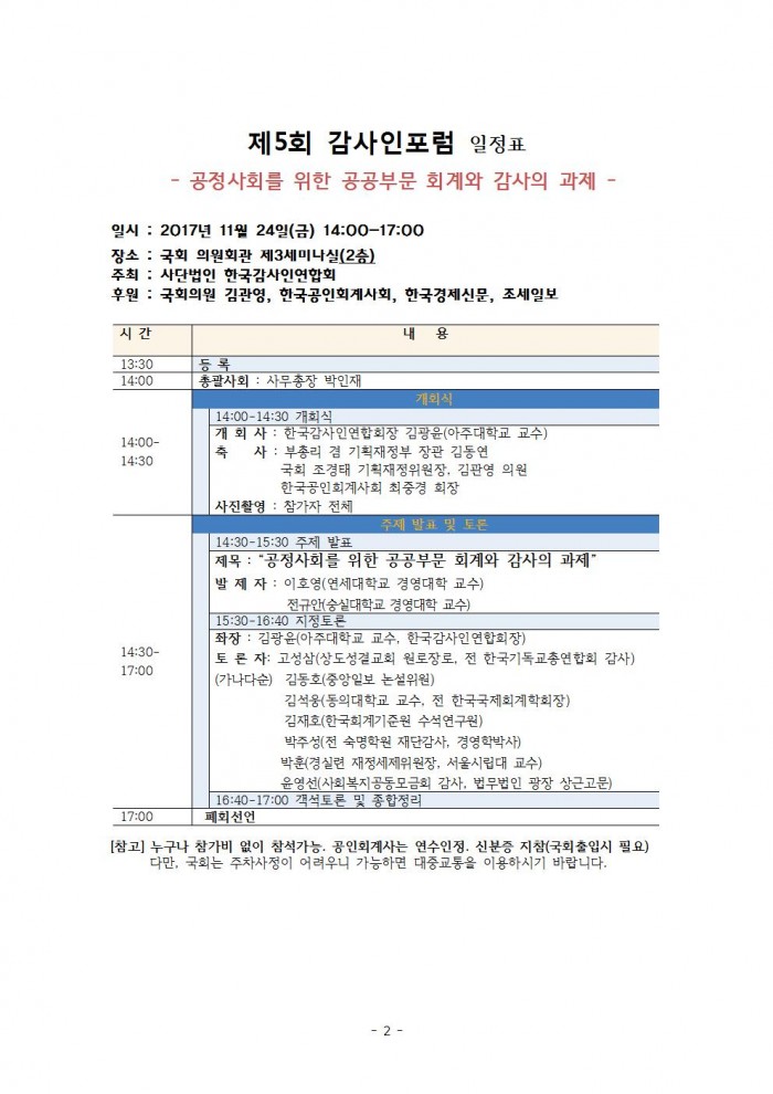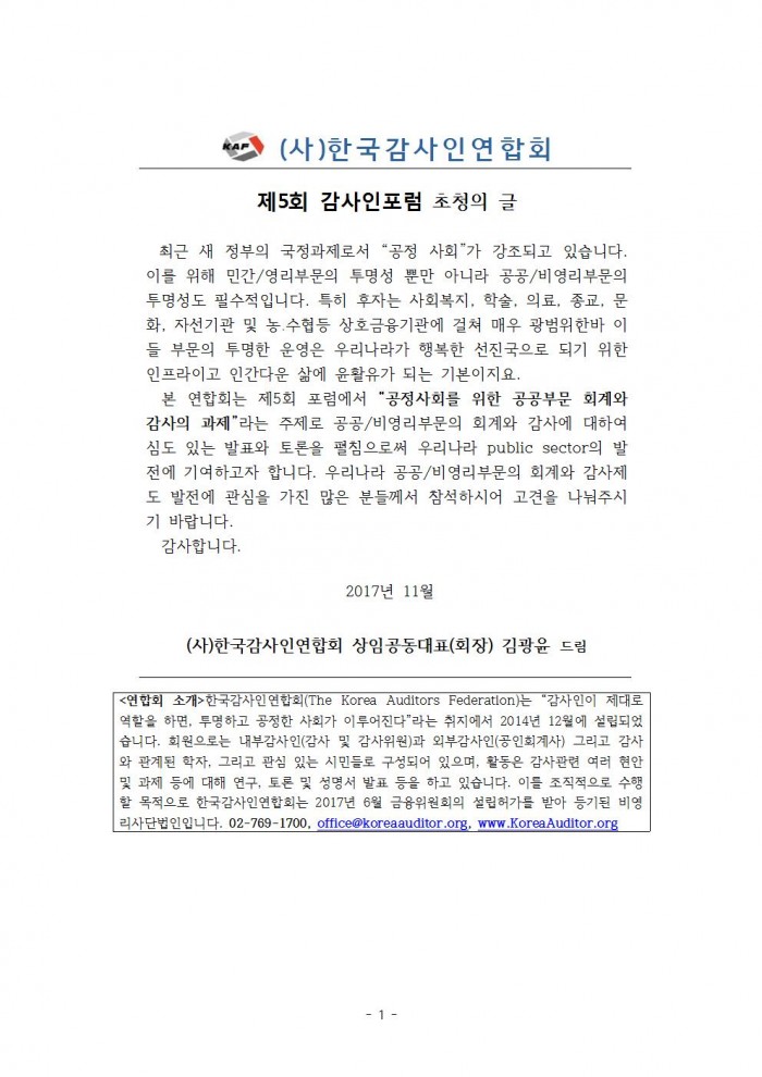 [(사)한국감사인연합회]제5회 감사인포럼 초청의 글