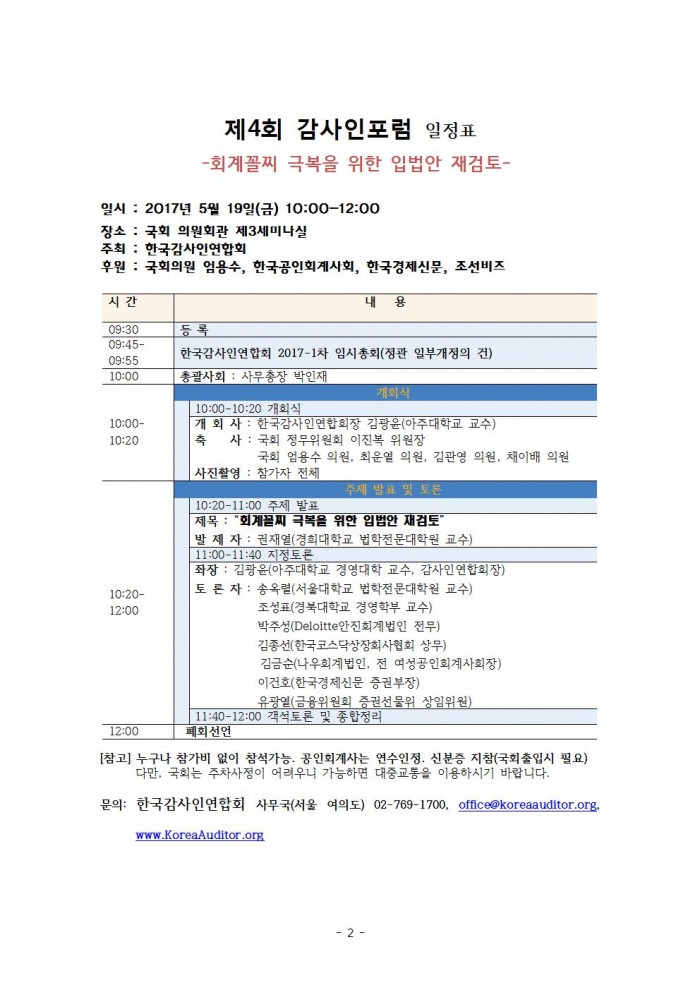 [한국감사인연합회]제4회 감사인포럼 초청의 글
