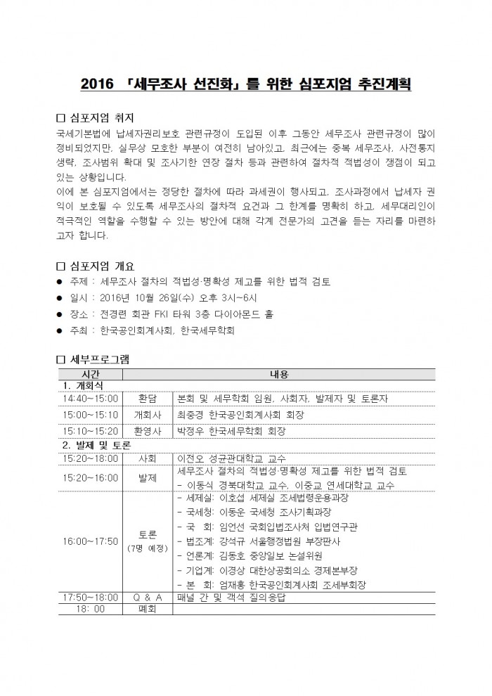 [한국공인회계사회/한국세무학회] 2016「세무조사 선진화」를 위한 심포지엄