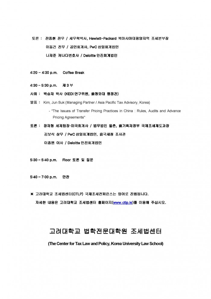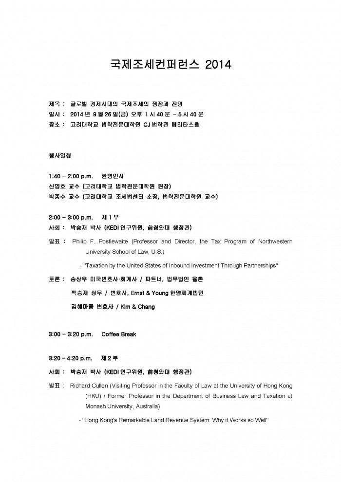 [공지][고려대학교 조세법센터]국제조세 컨퍼런스 개최공지 한국세무학회 0 20,280 2014.09.22 16:33 첨부파일 - 첨부파일: (20140918)(국문)International Tax Conference[1].pdf (107.9K) 2 2014-09-22 16:33:26 - 첨부파일: (20140918)International Tax Conference[1].pdf (71.2K) 0 2014-09-22 16:33:26 목록 본문
