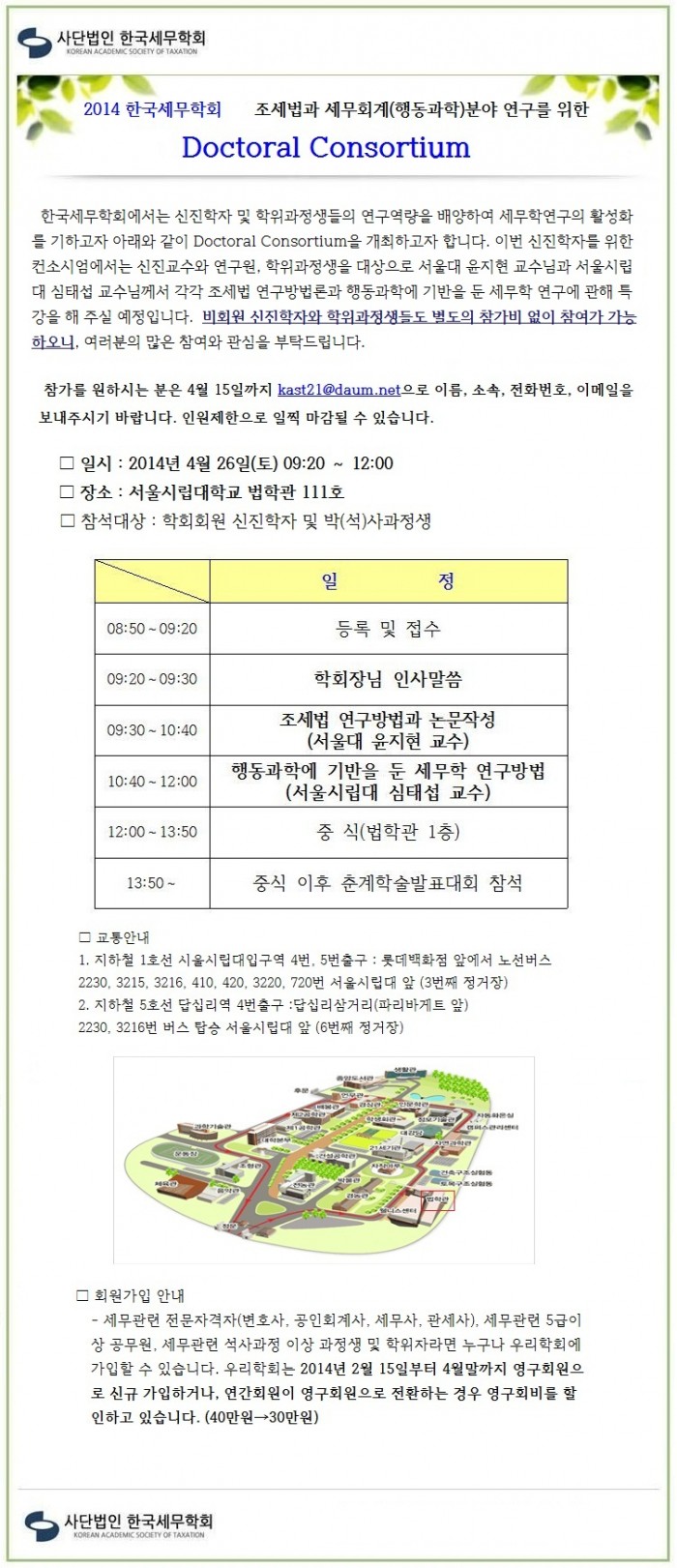 [한국세무학회]2014 한국세무학회 Doctoral Consortium 일정 및 참가신청 안내