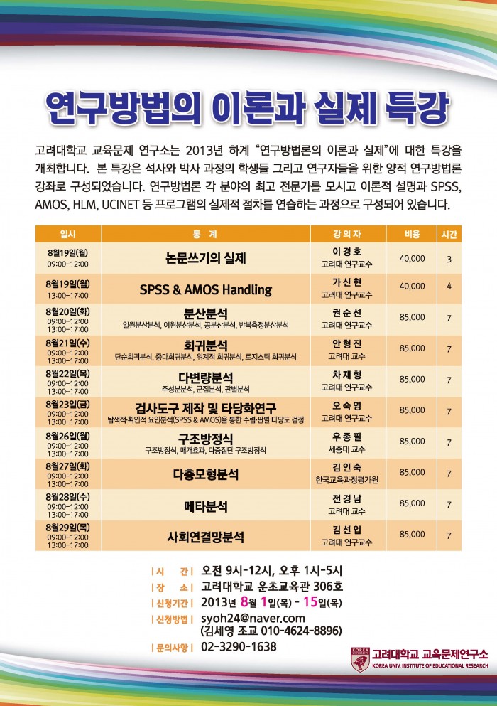 [공지][고려대학교 교육문제 연구소]"연구방법론의 이론과 실제" 특강 안내