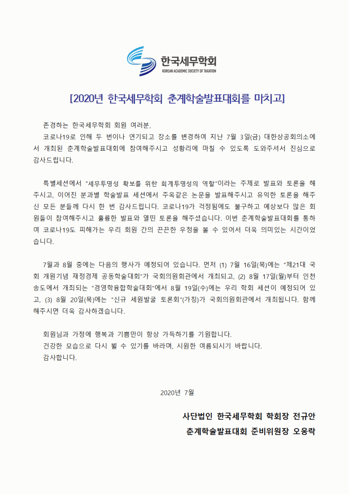 2020년 한국세무학회 춘계학술발표대회를 마치고