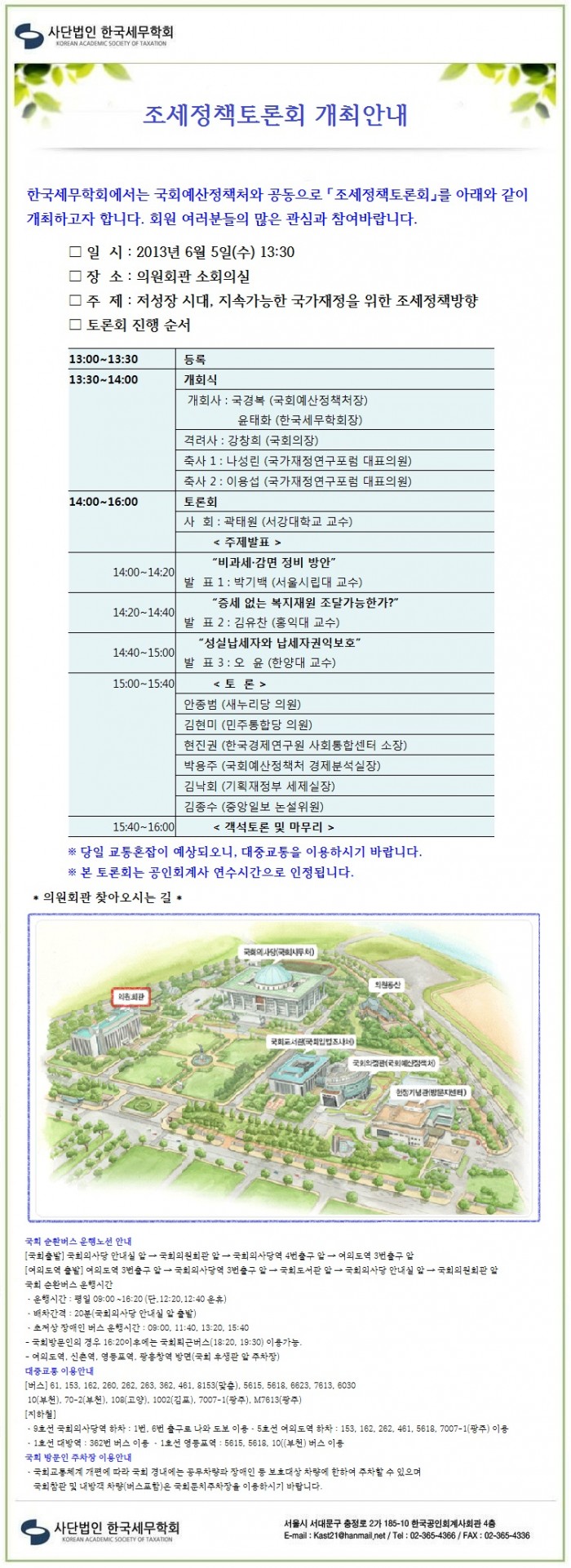 조세정책토론회 개최 안내(2013년 6월 5일 13:30)