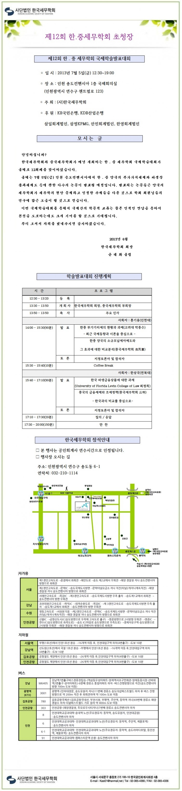 제12회 한중세무학회 국제학술발표대회 초청장