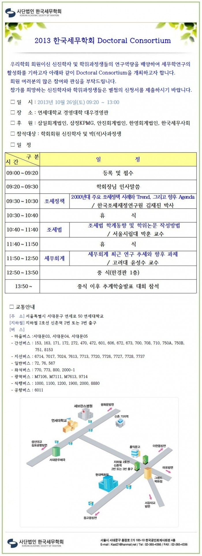 2013 한국세무학회 Doctoral Consortium 일정 및 참가신청 안내(시간변경공지) 한국세무학회 0 11,724 2013.10.07 09:52 첨부파일 - 첨부파일: 참가신청서(2013 한국세무학회 Doctoral Consortium).hwp (10.5K) 9 2013-10-07 09:52:21 목록 본문