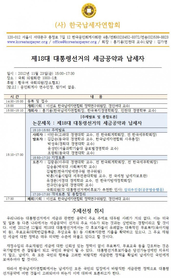 납세자연합회 제18대 대통령선거의 세금공약과 납세자