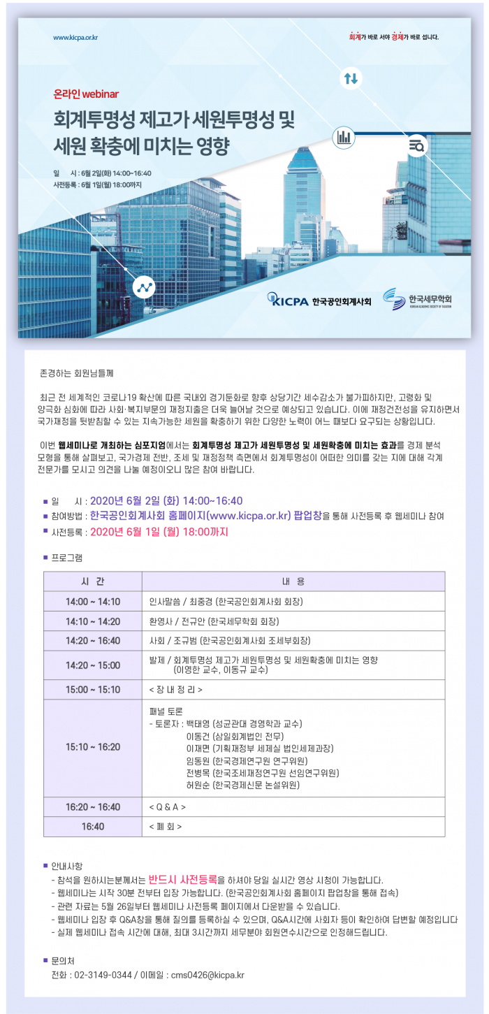 회계투명성 제고가 세원투명성 및 세원 확충에 미치는 영향(6/2, 온라인 webinar)