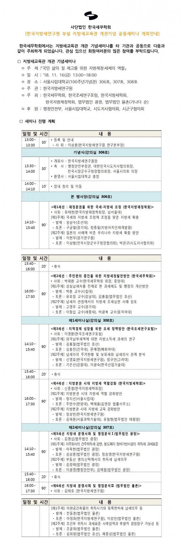 한국지방세연구원 부설 지방세교육관 개관기념 공동세미나 개최안내