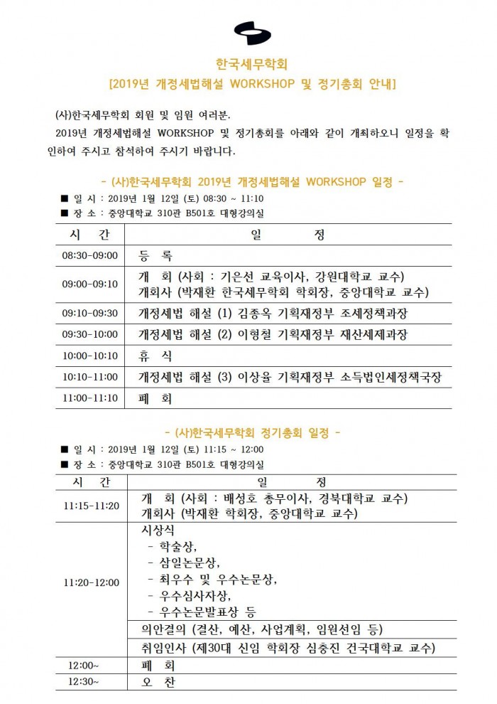 2019년 개정세법해설 WORKSHOP 및 정기총회 안내(1/12, 중앙대) 한국세무학회 0 8,117 2018.12.03 15:50 첨부파일 - 첨부파일: 02_ 2019 한국세무학회 Workshop교재_본문 85.pdf (2.0M) 10 2019-01-14 11:28:08 - 첨부파일: 01_ 2019 한국세무학회 Workshop교재_목차85.pdf (277.4K) 4 2019-01-14 11:28:08 목록 본문