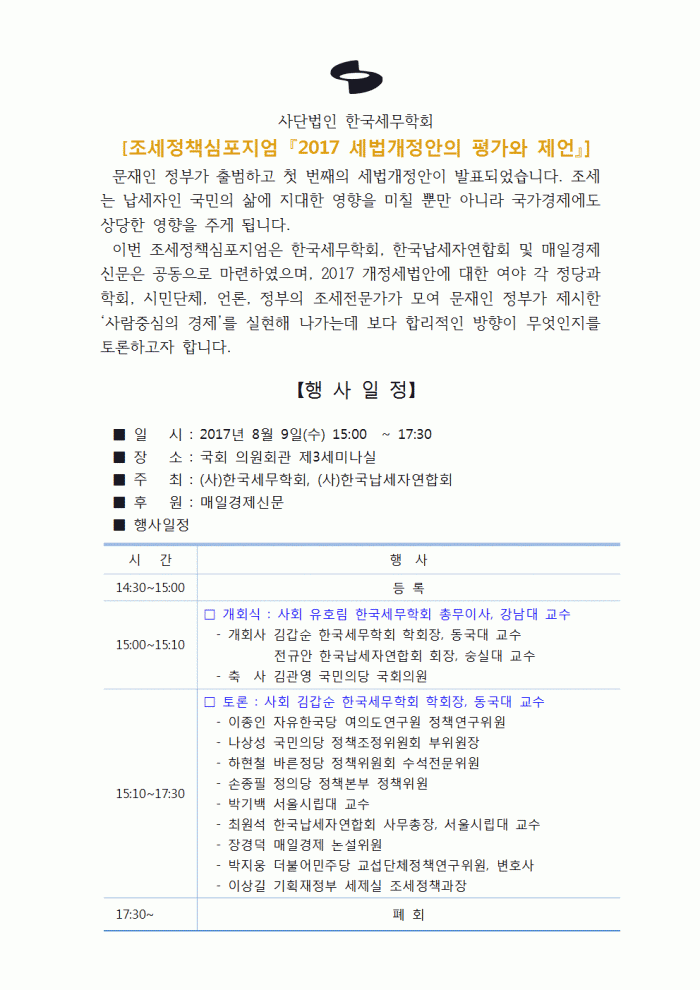 조세정책심포지엄 『2017 세법개정안의 평가와 제언』