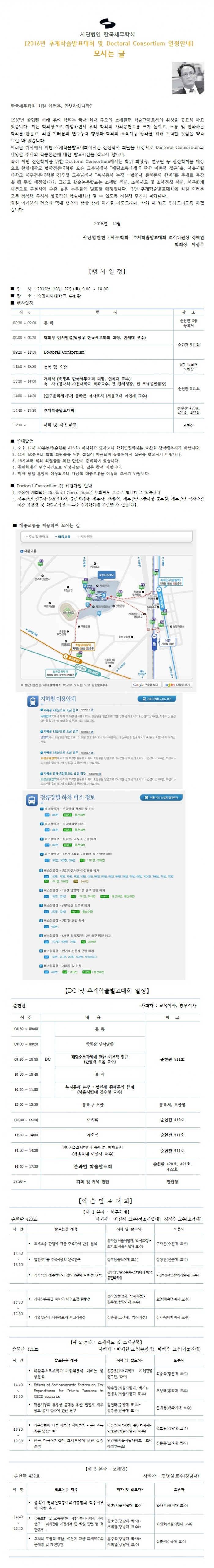 2016년 한국세무학회 추계학술발표대회 및 Doctoral Consortium 일정