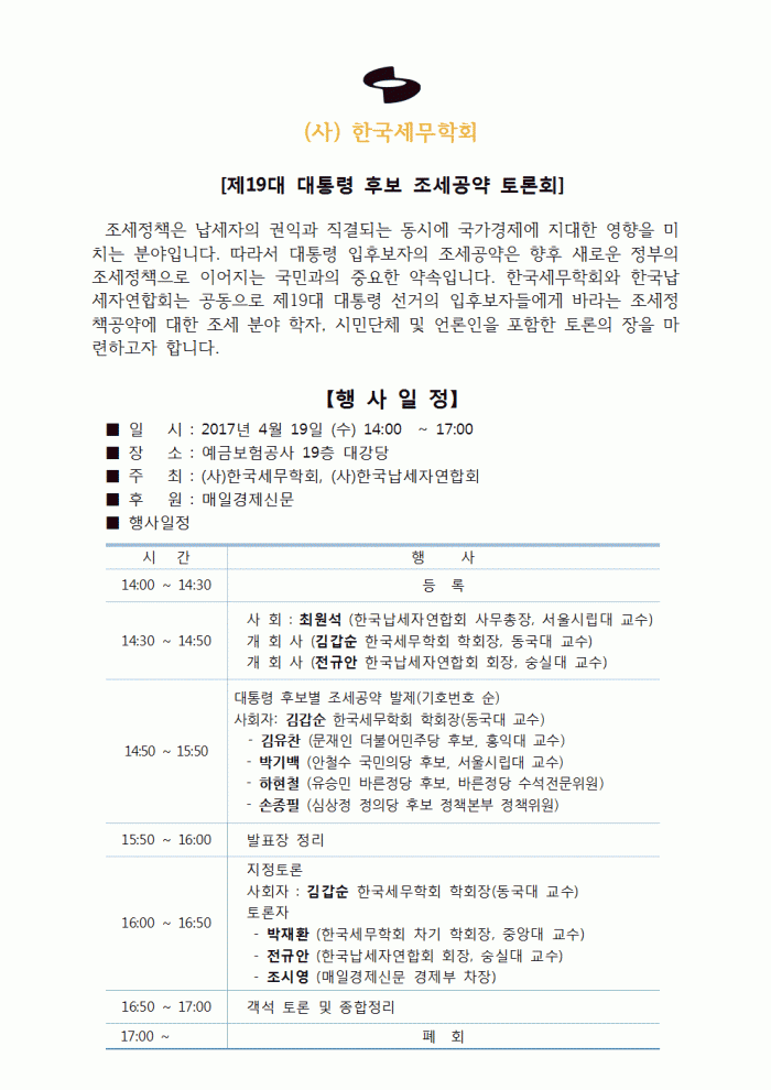 제19대 대통령 후보 조세공약 토론회 한국세무학회 0 9,083 2017.04.14 20:11 첨부파일 - 첨부파일: 제19대 대통령선거후보 조세공약토론회.pdf (3.6M) 6 2017-04-20 10:44:00 목록 본문