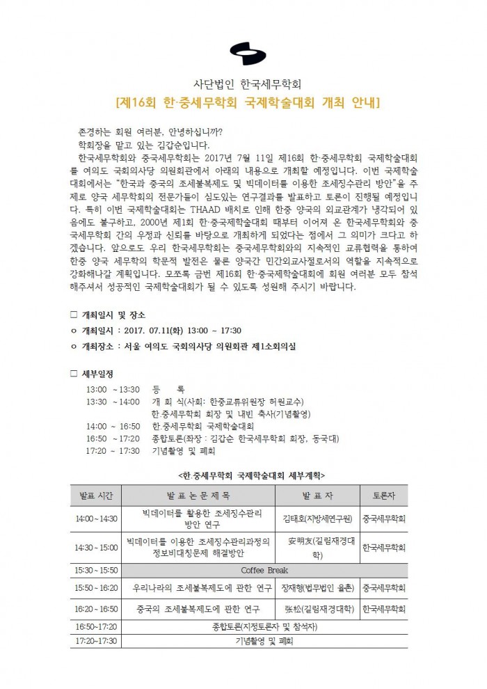 2017년도 한.중세무학회 국제학술대회 개최 안내(7/11, 국회)