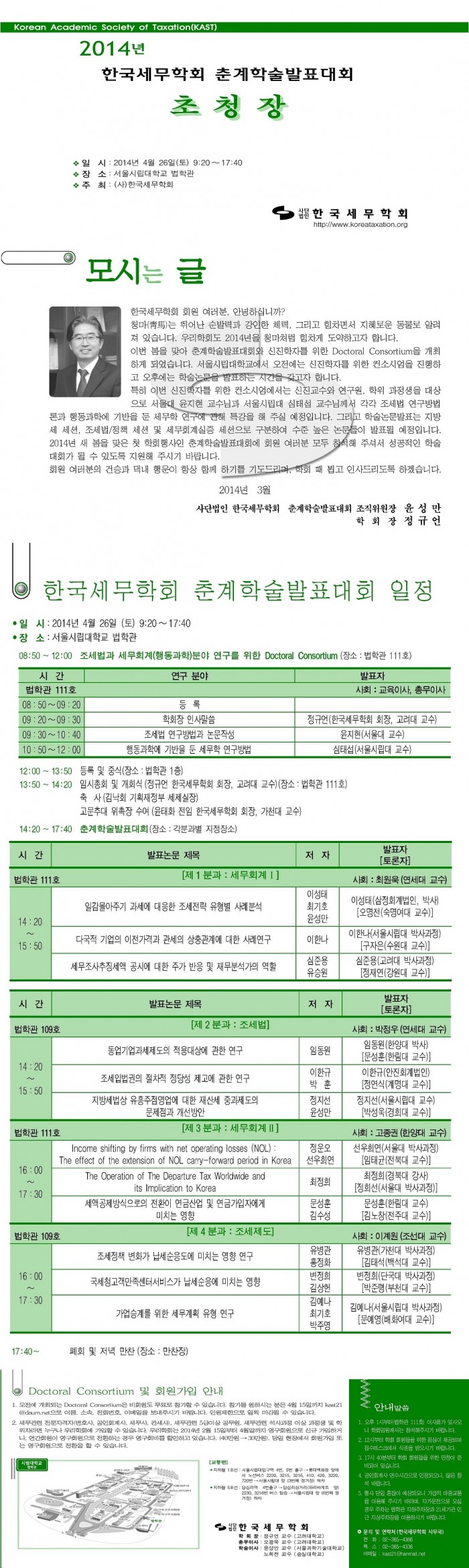2014년 한국세무학회 춘계학술발표대회 일정 안내(4/26, 서울시립대학교)